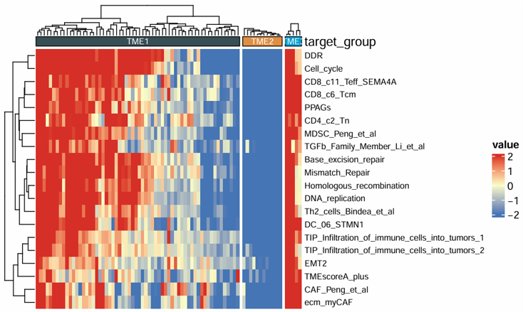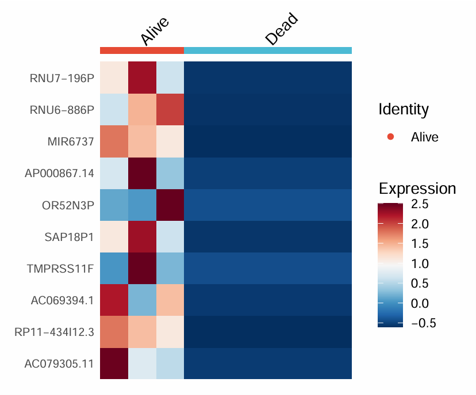 Identify marker genes for each group from bulk transcriptome data using a Seurat-based workflow. The module takes an expression matrix and phenotype data, detects group-specific marker genes, displays a heatmap of top markers, and returns the complete marker table.